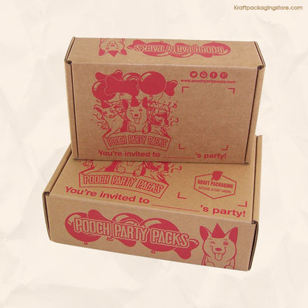This mailer box with one red color custom printed on brown Kraft paper board both internal and external.