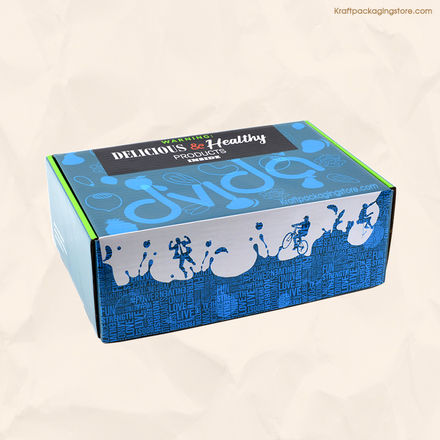 Custom mailer box style Kraft board packaging outside with 4 color CMYK offset printing in matt finish.