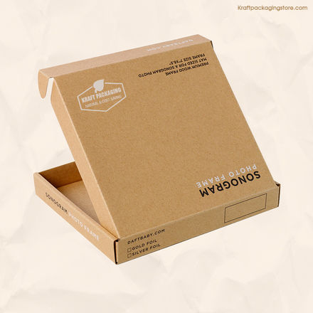 Custom printed photo frame packaging mailer box with black and white 2-color printing on the box outside.